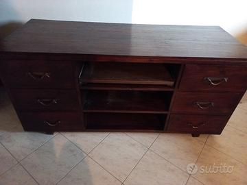 Vendo mobile etnico, porta TV con 6 cassetti e 3 ripiani di cui uno scorrevole.