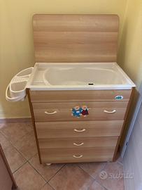 Mobile cassettiera completo di fasciatoio e vaschetta per bagnetto bimbi