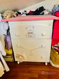 Vendo lettino dotato di cassettone e materasso, con mobile fasciato abbinato: 3 cassetti e vaschetta lavaggio bimbi. Marca Italbaby. Usato pochissimo, come nuovo. Solo ritiro e pagamento di Persona. Regalo bilancia pesa bimbi. NON EFFETTUO SPEDIZIONI.