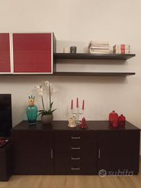 Vendesi a Noventa di Piave parete attrezzata Ferrari da salotto/ soggiorno colore marrone scuro con l' inserti di rosso. Il mobile è in ottimo stato, composto da