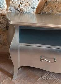 Mobile in vera foglia argento pagato €1.400,00 Adatto anche come mobile tv in salone. Ha il fori nel ripiano fia predosposto per il passaggio dei fili L 1.80 P 45 H 65