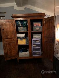 Mobile a due ante con costruzione artigianale tradizionale, completo di ferramenta antica e ripiani interni originali.
