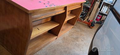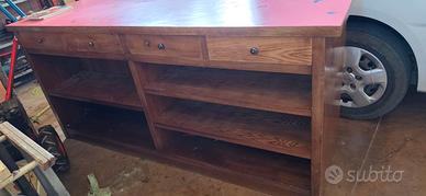 Vendo mobile in legno massello, robusto e spazioso, perfetto come banco da lavoro, bancone o scaffalatura per magazzino/officina. Dimensioni: 210 cm lunghezza x 70 cm larghezza x 100 cm altezza Piano superiore resistente in materiale laminato rosa con decorazioni farfalle Doppia struttura con scaffali interni e cassetti Ottimo stato strutturale, qualche segno di uso sul piano superiore (come da foto) Ideale per chi cerca un mobile grande e funzionale per laboratorio, garage, negozio o area creativa bancone negozio fiori