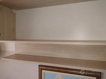 Armadio a muro in legno chiaro L 3,60m x P 54cm Come nuovo, svuotato e pronto! Vendo armadio a muro moderno in ottimo stato, colore legno chiaro (finitura noce/bianco caldo). Dimensioni totali: lunghezza 360 cm, profondità 54 cm Composto da moduli con ante battenti/scorrevoli, ripiani interni spaziosi e vani aperti. Perfetto per camera da letto o cabina armadio o salone anche, capiente e ben organizzato. Pulito e svuotato, ideale per trasloco immediato. Smontaggio e trasporto a carico dell'acquirente. PREZZO TRATTABILE