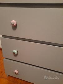 Mobile grigio tre cassetti, pitturato artigianalmente e posizionati nuovi pomelli misure 80x48
