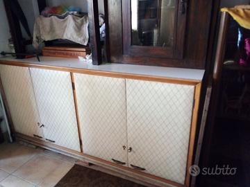 Parte di mobile guardaroba bianco, in legno, costruito artigianalmente negli anni 60-70, quattro ante. In buone condizioni. H 92cm, Lungh 2m Largh 61cm.