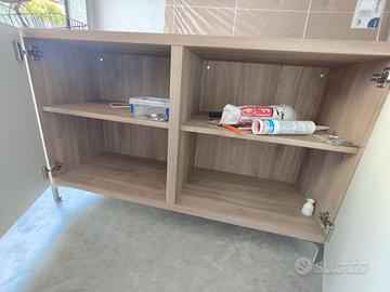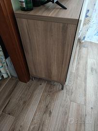 Mobile Ikea Besta con 2 ante. Mobile bianco con top effetto rovere. L'oggetto è in ottimo stato. Misure: L 120cm P 41,5 cm (anta inclusa) H 74 cm piedini inclusi (rimovibili)