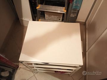 Cassettiera Ikea con 4 cassetti in plastica e piano da lavoro superiore.