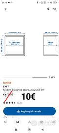 4 elementi di cui 2 colore grigio (35x35x35), uno con porta ed uno senza. 2 colore petrolio (35x25x35) senza porte. Incluse nel prezzo le staffe per il montaggio a parete del valore di € 5 ogn'una. prezzo totale € 55