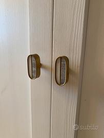 Mobile contenitore in legno di pino massiccio, 3 moduli Havsta Ikea dimensioni 81x37x134 cm per singolo modulo. Pomelli Zara Home in metallo e marmo. Acquistato 5 anni fa. Alcuni nodi del legno sono diventati più visibili nel tempo sotto la vernice.