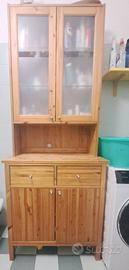 Regalo mobile IKEA in legno massello (pino), stile anni 2000, ancora solido e funzionale. Composto da parte bassa con ante e cassetti + alzata con vetrina. Ideale per bagno, cucina o ripostiglio. Presenta un foro sul retro per passaggio cavi (come da foto), facilmente copribile con tappo passacavi o utilizzabile così. Condizioni buone, solo normali segni d’uso. 📏 Dimensioni: h212 cm, larghezza 84cm, profondità 48cm Ritiro a mano a Milano zona Portello. Smontaggio e trasporto a carico di chi lo ritira.
