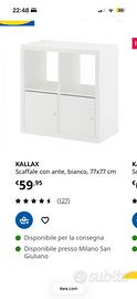 Mobile ikea kallax con due antine. In perfette condizioni. Misure 77x77