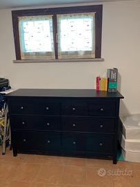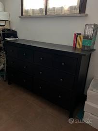 Mobile di colore nero capiente con 8 casetti di varie misure , lunghezza cm 161 larghezza cm 50.