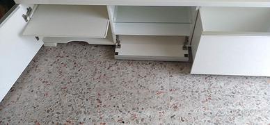 MOBILE IKEA PORTA TV PIU PER HI FI LACCATO BIANCO CON RIPIANI IN VETRO A SINISTRA E PREDISPOSTO PER L'AMPLIFICATORE E SOPRA IL PIANO SCORREVOLE PER PLAYSTATION AL CENTRO PER CASSA AUDIO E SOTTO IL CD ... A DESTRA IL SUO COMODO CASSETTO ZONA CINECITTA 150 EURO
