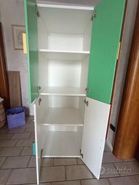 La struttura é suddivisa in 2 ripiani, 2 porte per ripiano con maniglie.