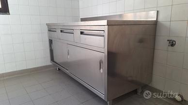 vendesi mobile in acciaio con 2 ante scorrevole e 3 cassetti per cucina professionale. dimensioni lunghezza 160 cm profondità 70 cm altezza pianale 86 cm contro il muro 96 cm