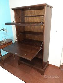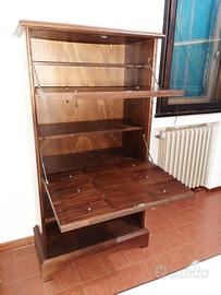 Madia ‘arte povera’, richiama lo stile Luigi Filippo della fine del XIX, definito da linee sobrie. Il mobile è in legno con scaffali e ribaltine da usufruire come scrittoio e/o per contenere libri e bottiglie. Questo mobile ha braccetti metallici di sostegno per garantire stabilità al ripiano una volta aperto. Misure 90x180x30 cm di profondità circa.