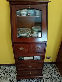 mobile multiuso in arte povera. H 140.P41 L49 Composto da anta a ribalta con vetro 2 cassettini da 21 cm di larghezza 3 cassetti da 45 cm di cui uno con vetro