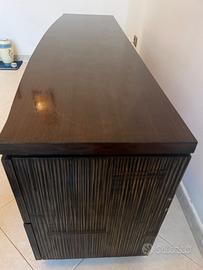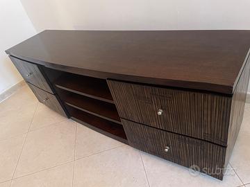 Vendo elegante mobile porta TV in bambù dalle dimensioni 160 cm (lunghezza) x 60 cm (altezza) x 40 cm (profondità). Il mobile è dotato di tre aperture posteriori per il passaggio ordinato dei cavi di TV, decoder e console. Dispone di 4 ampi cassetti laterali e ripiani centrali ideali per riporre dispositivi multimediali o oggetti decorativi. Condizioni buone, struttura solida e finitura scura molto raffinata, adatta a diversi stili di arredamento. 📍 Ritiro a carico dell’acquirente in Villagrazia di Carini (PA).