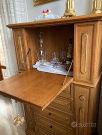 Mobile in ciliegio stile barocco con 5 cassetti ed una ribaltina ideale per aperitivi.