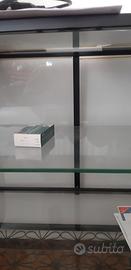 Mobile IKEA da soggiorno o camera, in ferro e vetro, 3 ripiani in vetro, 1 in bassoon in ferro. Aperto davanti. molto simpatico