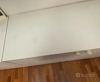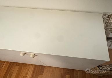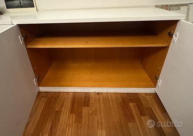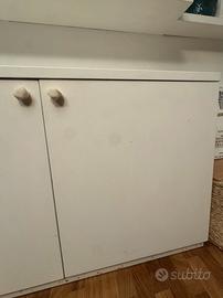 Vendo mobile in legno bianco a due ante con due ripiani interni. Fatto su misura. Dimensioni: 120 (larghezza) x 45 (profondità) x 76 cm (altezza). Presenta segni di usura dovuti all’utilizzo, migliorabili con una semplice verniciatura. In vendita un secondo mobile uguale (ID 643778241) Ritiro a mano a Milano zona centro. Smontaggio (molto facile) e trasporto a carico dell’acquirente. Secondo piano senza ascensore. Non rispondo a danni durante smontaggio e/o trasporto. Prezzo trattabile.