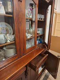 Mobile in legno a vetri con scaffali
