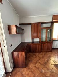 Composto da credenza con ante in vetro, cassettiera e mensole integrate.