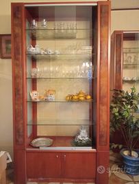 mobile in legno stoffa e vetri ottimi per arredamento negozi tabacchi profumeria pelletteria e gioielleria con luci interne componibili di dimensione singola h cm 240 p CM 43 l CM 126