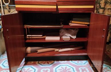 Sono eventualmente disponibili un altro mobile gemello ed una scrivania con piano in vetro che componevano l'arredamento dello studio di un noto architetto genovese che li ha disegnati e fatti realizzare da un ebanista.