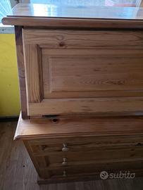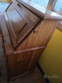Mobile in legno di pino con ribalta che diventa scrittoio
