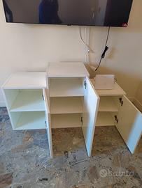 Mobile in legno laccato bianco (non è un bianco optical e non è un truciolato). Dimensioni: 125 cm lunghezza, 42 cm profondità. Si possono staccare i 3 moduli svitandoli all'interno. Ha due sbeccature ai lati. Consegna su Roma o spedizione disponibile.