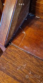 Il mobile è composto da una vetrinetta con due ripiani nella parte superiore, una ribaltina nella parte centrale (rotta sui lati come da foto allegata) e un modulo con due ante e un ripieno nella parte inferiore