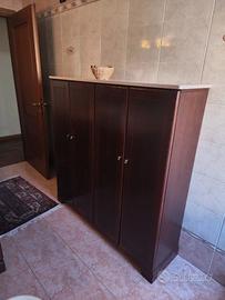 Lego massello di noce con top in marmo, dimensioni: 137x141x39 cm. Il mobile ha 4 ante, per ogni anta si contano 5 ripiani.