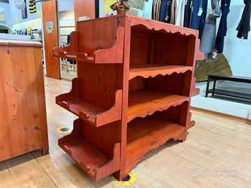 Molto solido e ben tenuto, con tre ripiani centrali e ripiani sagomati laterali.