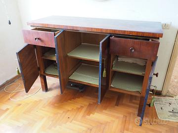 Mobile basso in legno massiccio datato ma ben conservato, con cassetti ante e ripiani, costruito da noto mobilificio di Udine. Misure larghezza: 144 cm - altezza: 100 cm - profondità : 50 cm Si trova a Udine
