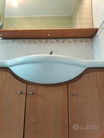 mobile in legno con tre ante lavabo ad appoggio +specchiera con mensola e luce. mobile già smontato da ritirare a proprie spese