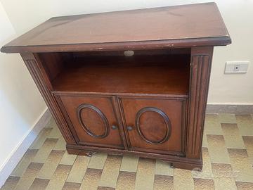 Mobile in legno porta TV videoregistratore ecc. Due ante per riporre oggetti. Graffi e segni di usura in varie parti