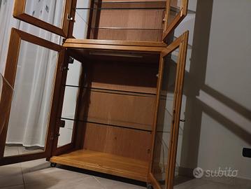 Mobile in legno di produzione artigianale, altezza circa 2,20 m, vetrine e ripiani in vetro, divisibile in due diversi mobili, illuminazione a neon interna. contattare su app subito.it
