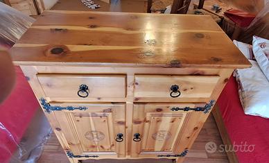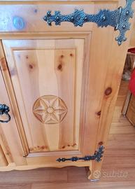 Mobile in massello di pino come nuovo ideale per ambienti montani o tavernette. Quattro sedie in legno impagliate