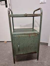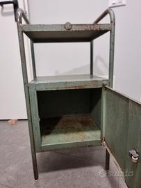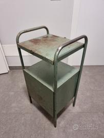 Piccolo Mobiletto in metallo vintage anni 60 come da foto. Probabilmente usato in uno studio medico. Verde salvia conserva la patina del tempo. Misure alto 80 cm largo 40 cm profondità 35 cm. Formula visto e piaciuto. Ritiro a carico acquirente.