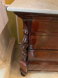 Per conto di amici vendo ad amatori, mobile in legno di noce di fattura artigianale degli inizi del secolo scorso, con piano in marmo di Carrara, mobile completamente restaurato, e in ottime condizioni, il valore commerciale è di circa 8000 euro, vendo per immediato realizzo a 3500 euro.