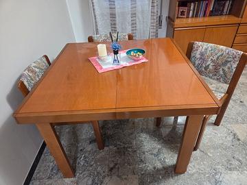 Tavolo in noce allungabile. Misure: quadrato di cm 114 per lato con altezza cm 78.