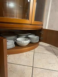 Mobile sala in noce nazionale massiccio, tenuto molto bene, lunghezza 270 cm x 53 cm (profondità), 39 cm parte lunga a sinistra. Se interessati venire in loco per smontaggio e ritiro.