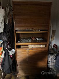 Vendo mobile contenitore in rovere, di grandi dimensioni, solido e ben proporzionato, con ante a serranda scorrevoli (superiore e inferiore) e ripiani interni.