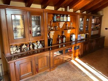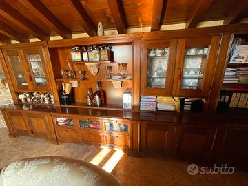 bellissimo mobile in legno massello intarsiato fatto a mano da artigiani professionisti il mobile si presenta in uno stato pari al nuovo,mobile importante per taverne,mansarde,ristoranti di livello,agriturismi in ogni luogo dove si vuole dare importanza all'arredo,vi è la possibilità di dividerlo in tre parti uguali,posizionandoli a vostra scelta all interno della vostra abitazione