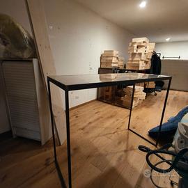 Mobile industrial ferro e vetro temperato con assi originali dei canali di Venezia pezzo su misura