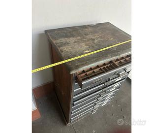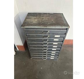 Cassettiera tipografica vintage, tot. 9 cassetti con divisori in legno perfetta per collezionisti ad es. minerali, gioielli, monete o altri piccoli manufatti.