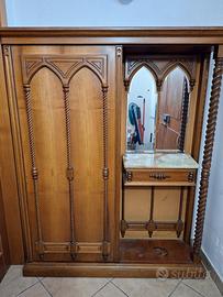 Mobile antico con sportello a scorrimento, pezzo di marmo che nasconde un cassettino, 1 dei sue specchi è un pochino rovinato, dimensioni: altezza 167 senza gambine larghezza 136 profondità 34