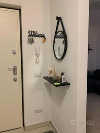 • Specchio da parete rotondo con cornice e cinghia nera. Stile nordico, acquistato a Leroy Merlin
